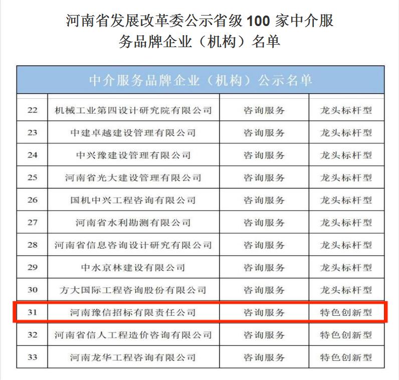 河南省發(fā)展改革委公示省級100家中介服務品牌企業(yè)(機構)名單