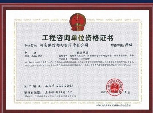 河南豫信招標(biāo)有限責(zé)任公司OHSMSSMS中文證書 -