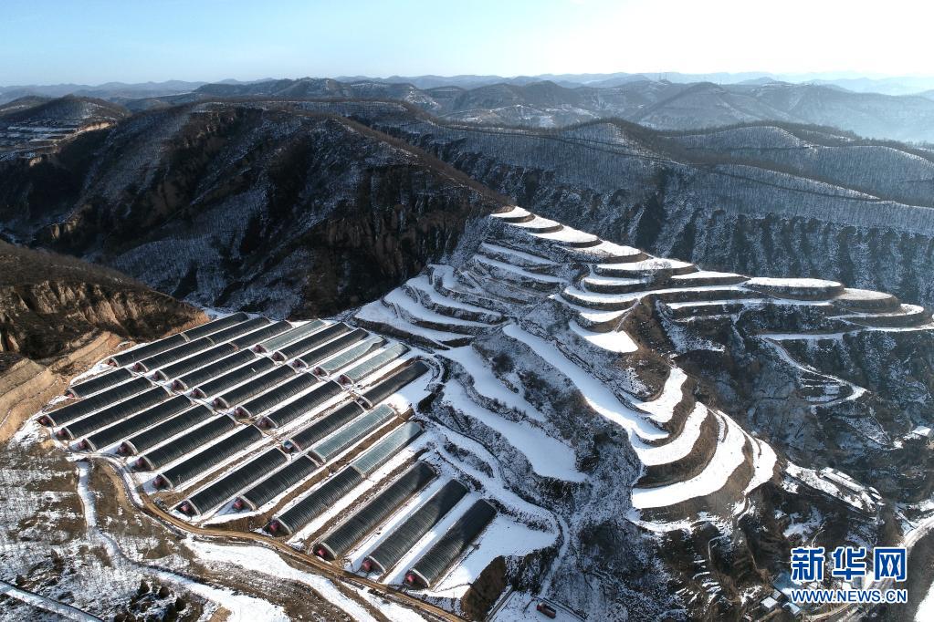 這是2020年1月20日拍攝的延安市寶塔區(qū)青化砭鎮(zhèn)梁村溫室大棚(無(wú)人機(jī)照片)。新華社記者 張博文 攝