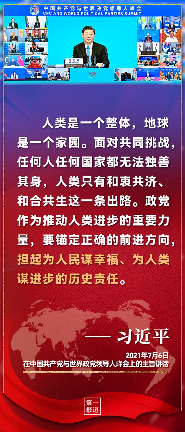 在中國(guó)共產(chǎn)黨成立100周年之際,習(xí)近平同來自160多個(gè)國(guó)家的500多個(gè)政黨和政治組織等領(lǐng)導(dǎo)人、逾萬(wàn)名政黨和各界代表共聚“云端”,探討“為人民謀幸福與政黨的責(zé)任”這個(gè)重大命題。