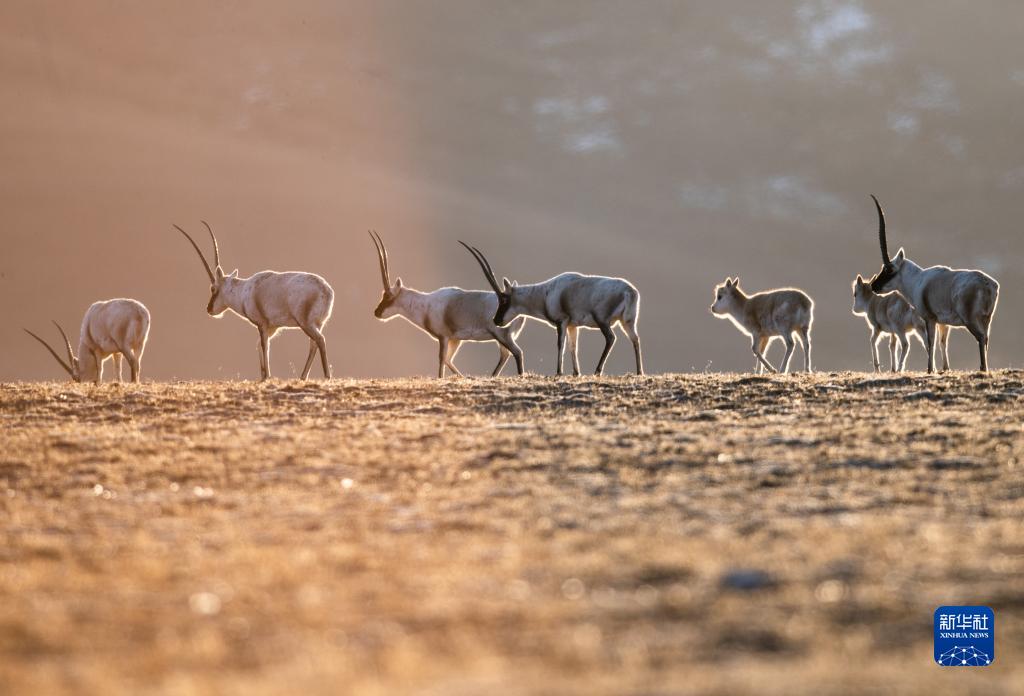 西藏羌塘自然保護(hù)區(qū)內(nèi)的藏羚羊(2019年1月31日攝)。新華社記者 普布扎西 攝