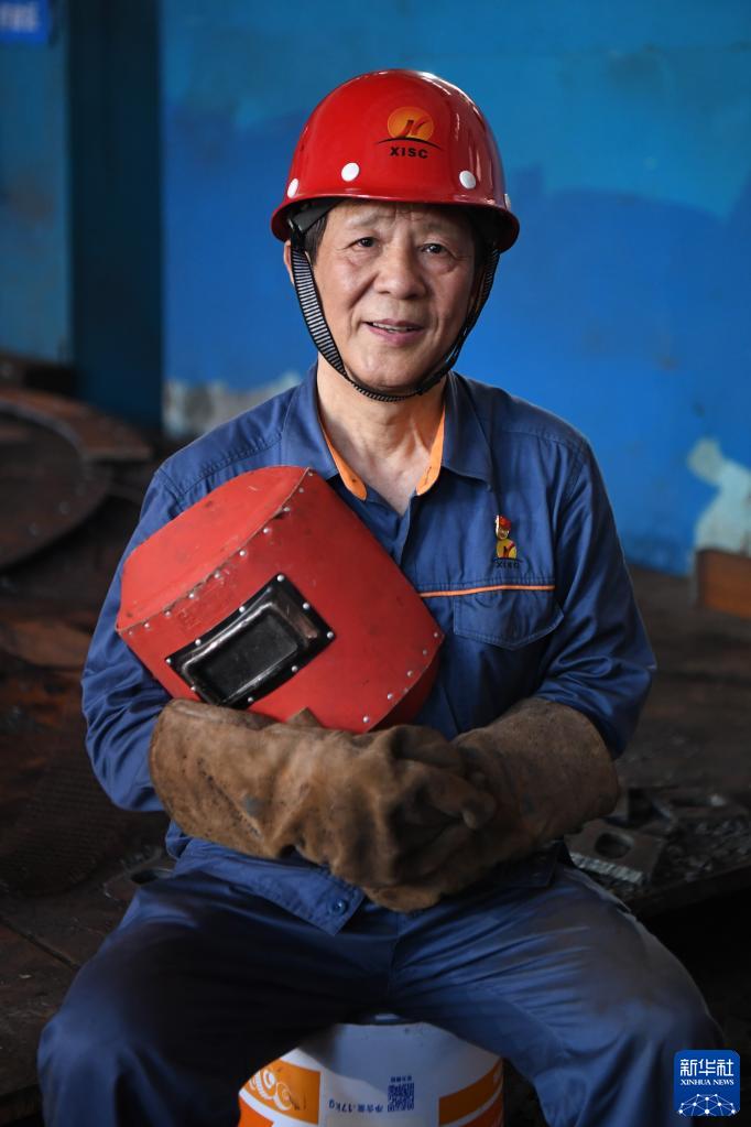 在湖南華菱湘潭鋼鐵有限公司廠房內(nèi)拍攝的艾愛國(6月12日攝)。新華社記者 薛宇舸 攝