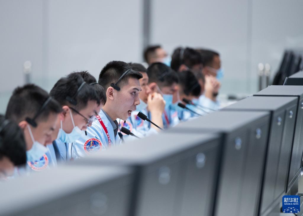 在北京航天飛行控制中心,科研人員在監(jiān)測神舟十二號載人飛船與天和核心艙自主快速交會(huì)對接情況(6月17日攝)。新華社記者 金立旺 攝