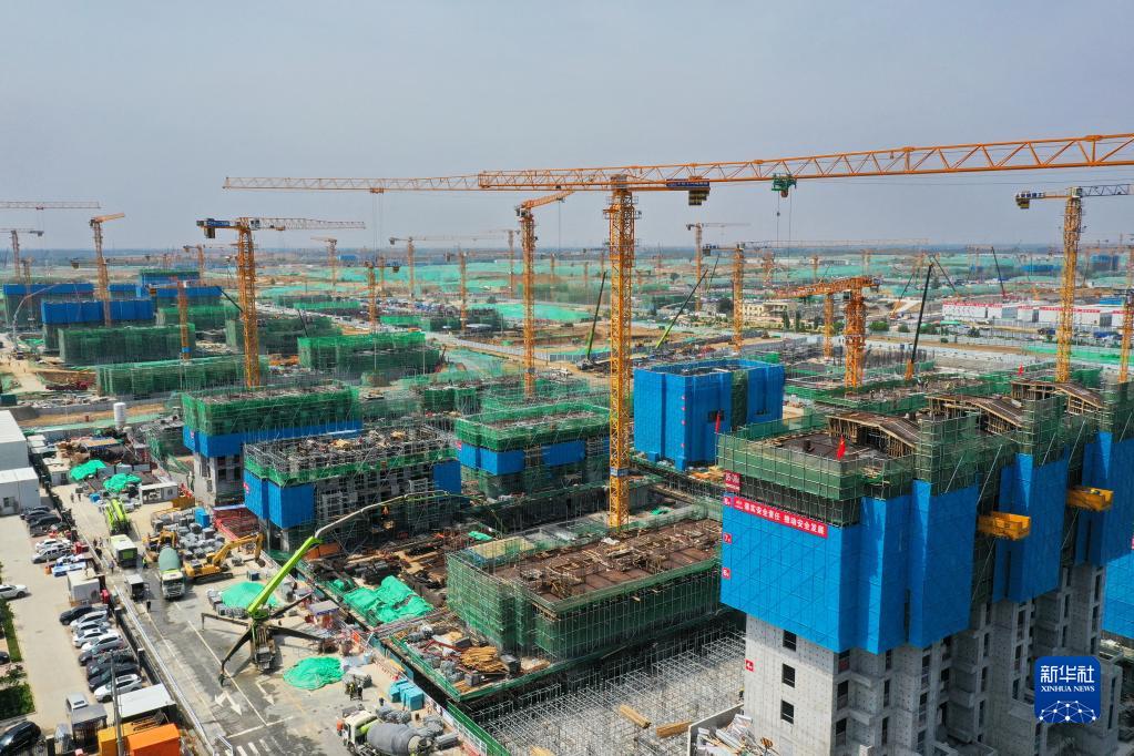 這是雄安新區(qū)容西片區(qū)建設現(xiàn)場(7月3日攝,無人機照片)。新華社記者 楊世堯 攝