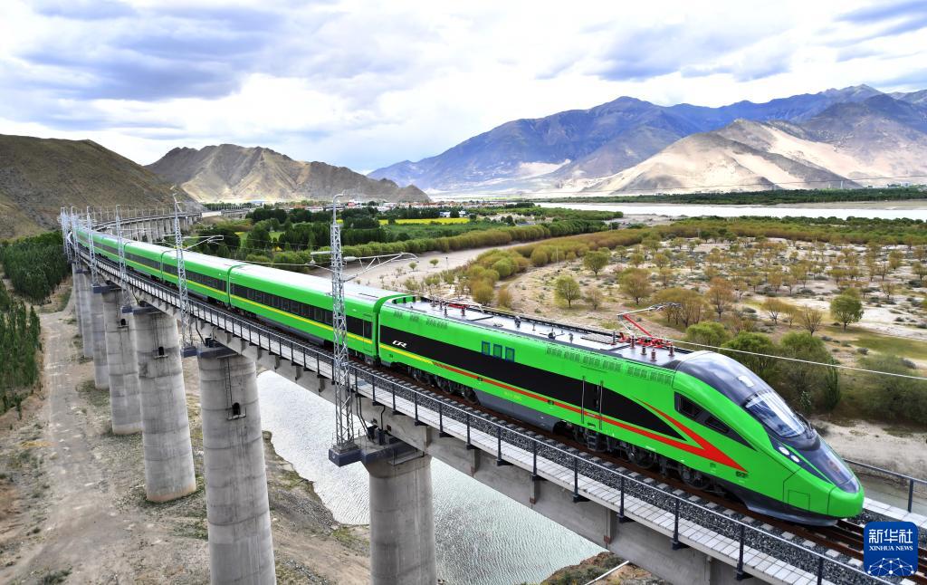 數(shù)千里之外,青藏高原。雅魯藏布江河谷中,全新的復(fù)興號列車呼嘯而過。