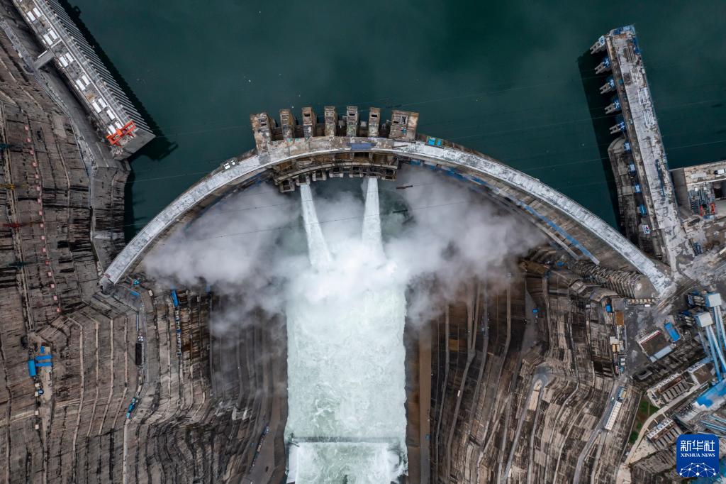 俯瞰白鶴灘水電站(無人機照片,6月28日攝)。金沙江白鶴灘水電站首批機組于6月28日安全準點投產(chǎn)發(fā)電。新華社記者 江文耀 攝