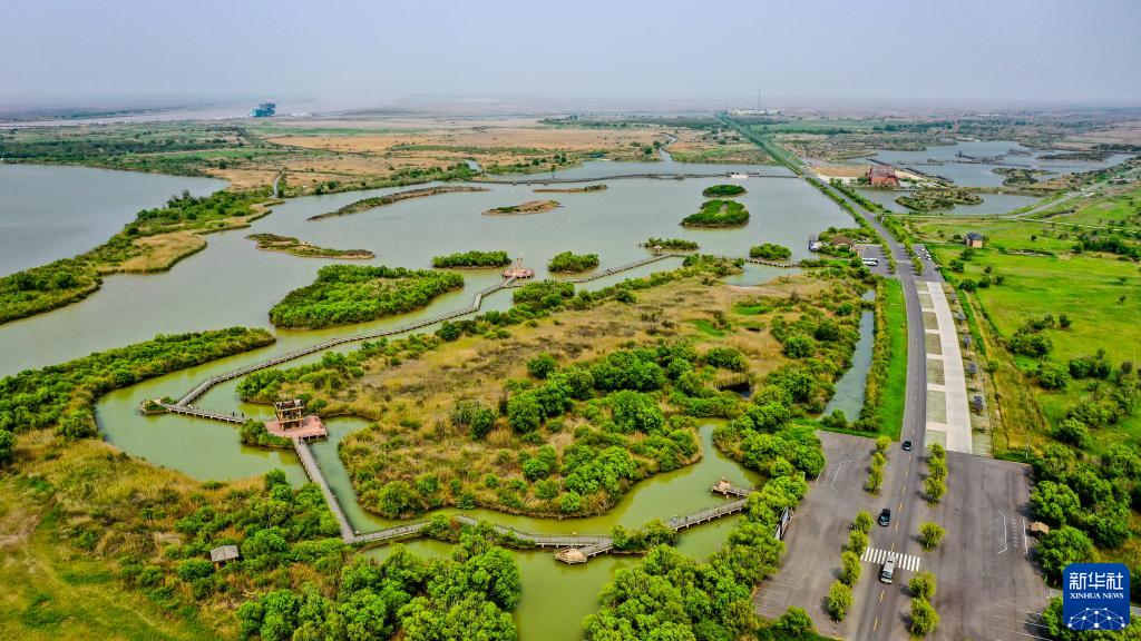 這是山東黃河三角洲國家級自然保護區(qū)景色(5月13日攝,無人機照片)。新華社記者 郭緒雷 攝
