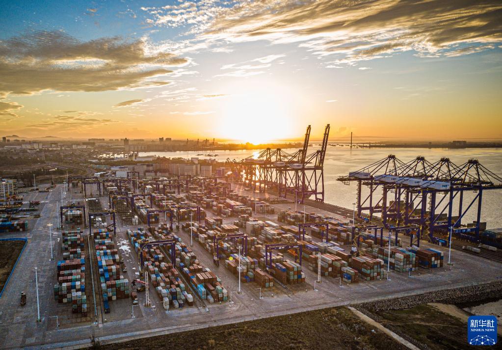 這是在海南洋浦經(jīng)濟開發(fā)區(qū)拍攝的洋浦國際集裝箱碼頭(5月26日攝,無人機照片)。新華社記者 蒲曉旭 攝