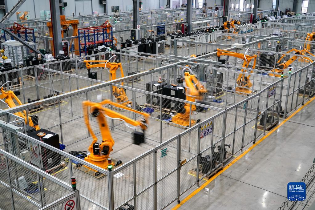 7月1日,在位于江蘇省南京市江寧區(qū)的南京埃斯頓自動化股份有限公司工業(yè)機器人生產(chǎn)車間,工業(yè)機器人在進行跑合測試。新華社記者 李博 攝