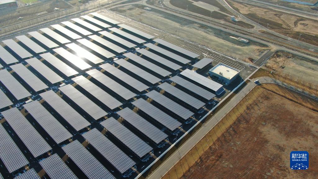 這是在遼寧省沈陽市的華晨寶馬鐵西新工廠拍攝的光伏發(fā)電設(shè)施(12月28日攝,無人機(jī)照片)。新華社記者 楊青 攝
