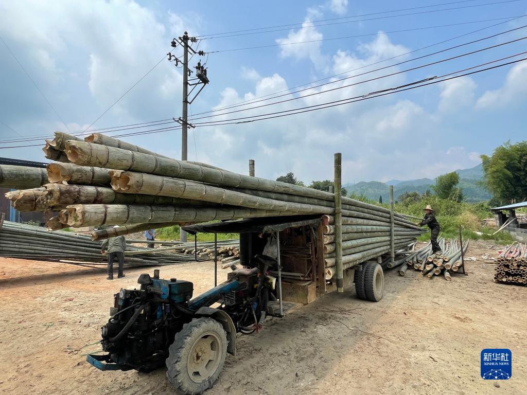 湖南省汝城縣熱水鎮(zhèn)村民在搬運(yùn)竹子(8月22日攝)。新華社記者 蘇曉洲 攝
