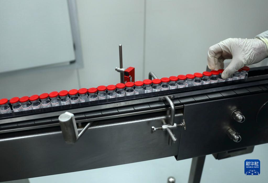 2021年10月5日,在馬來(lái)西亞吉隆坡郊區(qū)的發(fā)馬公司灌裝工廠,工人包裝本地灌裝生產(chǎn)的中國(guó)科興新冠疫苗。新華社記者 朱煒 攝