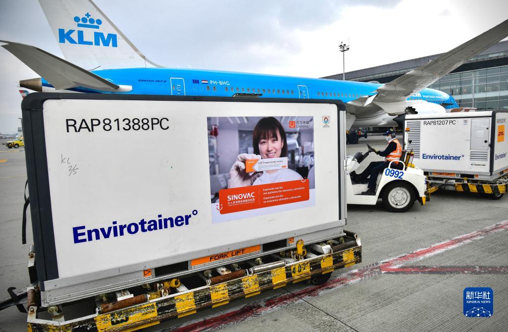 這是2021年3月6日在哥倫比亞波哥大埃爾多拉多國(guó)際機(jī)場(chǎng)拍攝的剛剛完成卸貨的科興疫苗。新華社發(fā)(哥倫比亞總統(tǒng)府供圖)