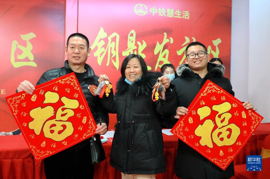 1月17日,即將入住雄安新區(qū)容東片區(qū)E組團安置房的居民展示鑰匙。新華社發(fā)