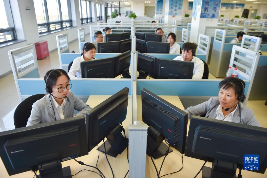 在位于北京亦莊的12345市民熱線話務(wù)大廳,工作人員接聽熱線電話(2019年11月13日攝)。新華社記者 彭子洋 攝