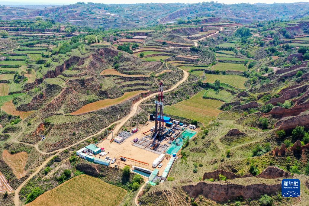 這是華新燃?xì)馍轿魉{(lán)焰煤層氣集團(tuán)有限責(zé)任公司位于山西省長治市武鄉(xiāng)縣的一處鉆井現(xiàn)場(2021年6月22日攝,無人機照片)。新華社記者 曹陽 攝