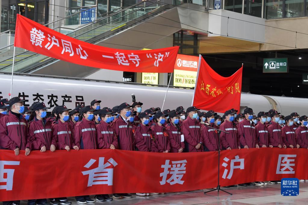 4月3日,江西省援滬醫(yī)療隊從南昌出發(fā),馳援上海抗擊疫情。新華社記者 彭昭之 攝