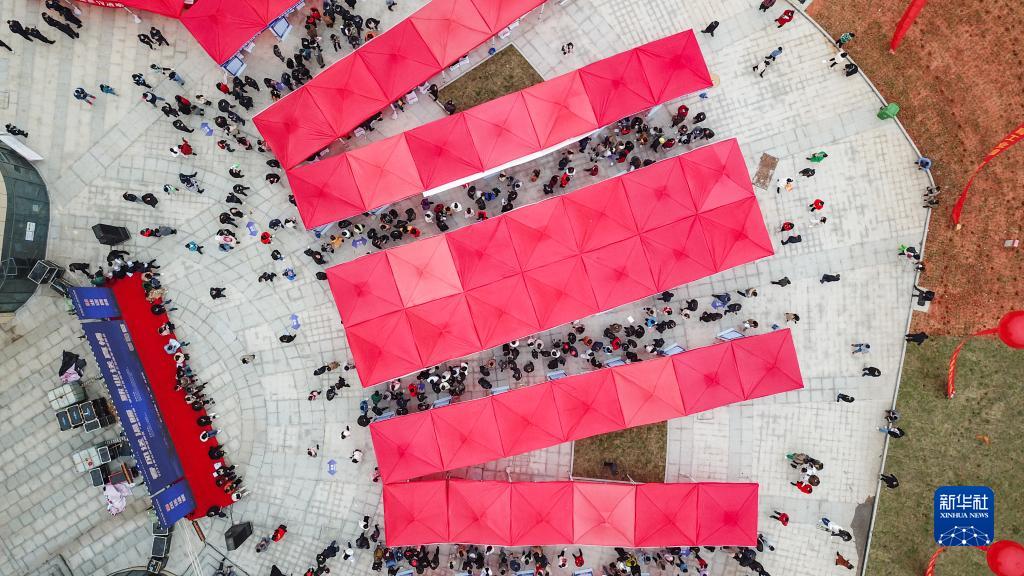這是3月10日在長(zhǎng)沙望城經(jīng)開(kāi)區(qū)銅官工業(yè)園拍攝的招聘活動(dòng)現(xiàn)場(chǎng)(無(wú)人機(jī)照片)。新華社記者 陳澤國(guó) 攝