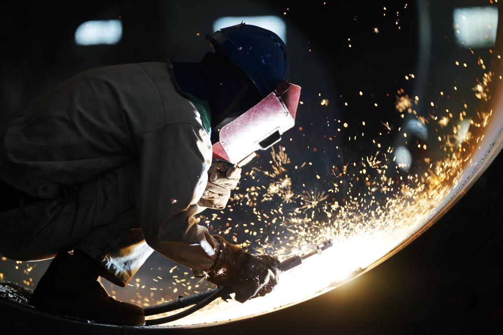 4月14日,在哈電集團(tuán)哈爾濱鍋爐廠有限責(zé)任公司車(chē)間,工人在進(jìn)行生產(chǎn)作業(yè)。新華社記者王建威 攝