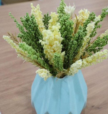 陳俊璋和公司團隊研發(fā)打造的藜麥永生花。新華社記者文靜攝