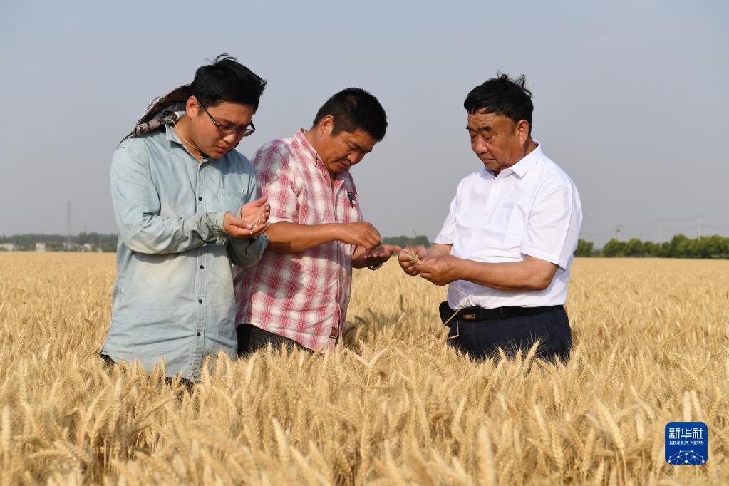 徐淙祥在安徽太和縣淙祥現(xiàn)代農(nóng)業(yè)種植專業(yè)合作社察看小麥樣品(2022年6月28日攝)。新華社記者 周牧 攝