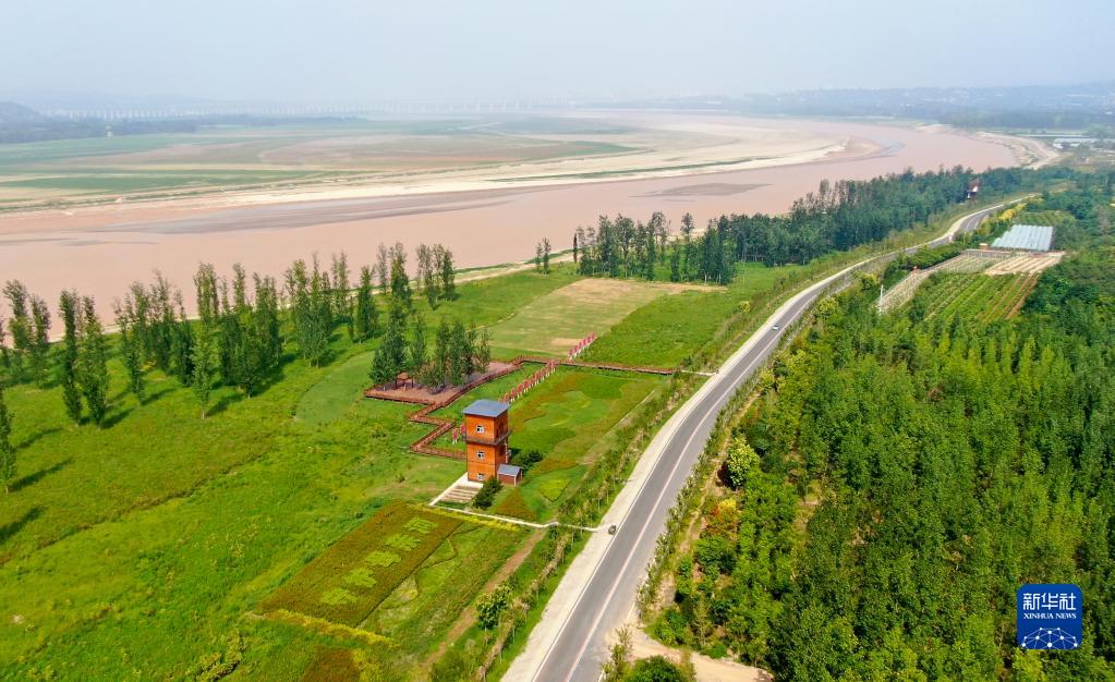 這是2022年8月10日在河南省三門峽市拍攝的黃河生態(tài)廊道(無人機照片)。新華社記者 郝源 攝
