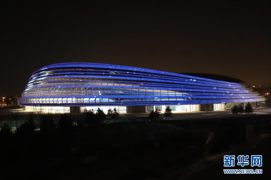 這是2020年12月15日,國家速滑館進行場館外立面泛光照明調(diào)試。新華社記者 張驍 攝
