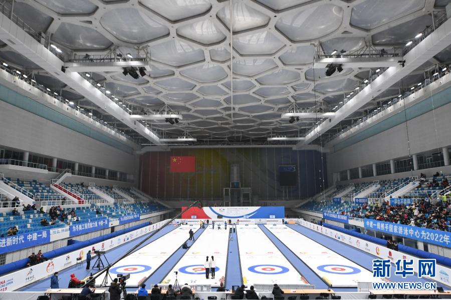 這是2019年12月8日,觀眾在國家游泳中心觀看中國青少年冰壺公開賽女子冰壺決賽。新華社記者 鞠煥宗 攝