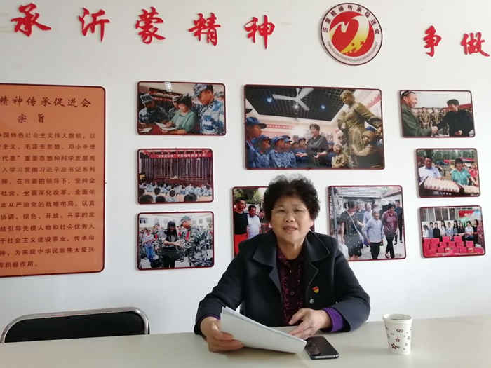 2016年,于愛梅發(fā)起成立沂蒙精神傳承促進(jìn)會(huì),承擔(dān)起傳承、弘揚(yáng)沂蒙精神的重任,現(xiàn)有會(huì)員300余人。走訪慰問部隊(duì)哨所、各地開展宣講報(bào)告,年近七十的于愛梅足跡已遍布大半個(gè)中國(guó)。