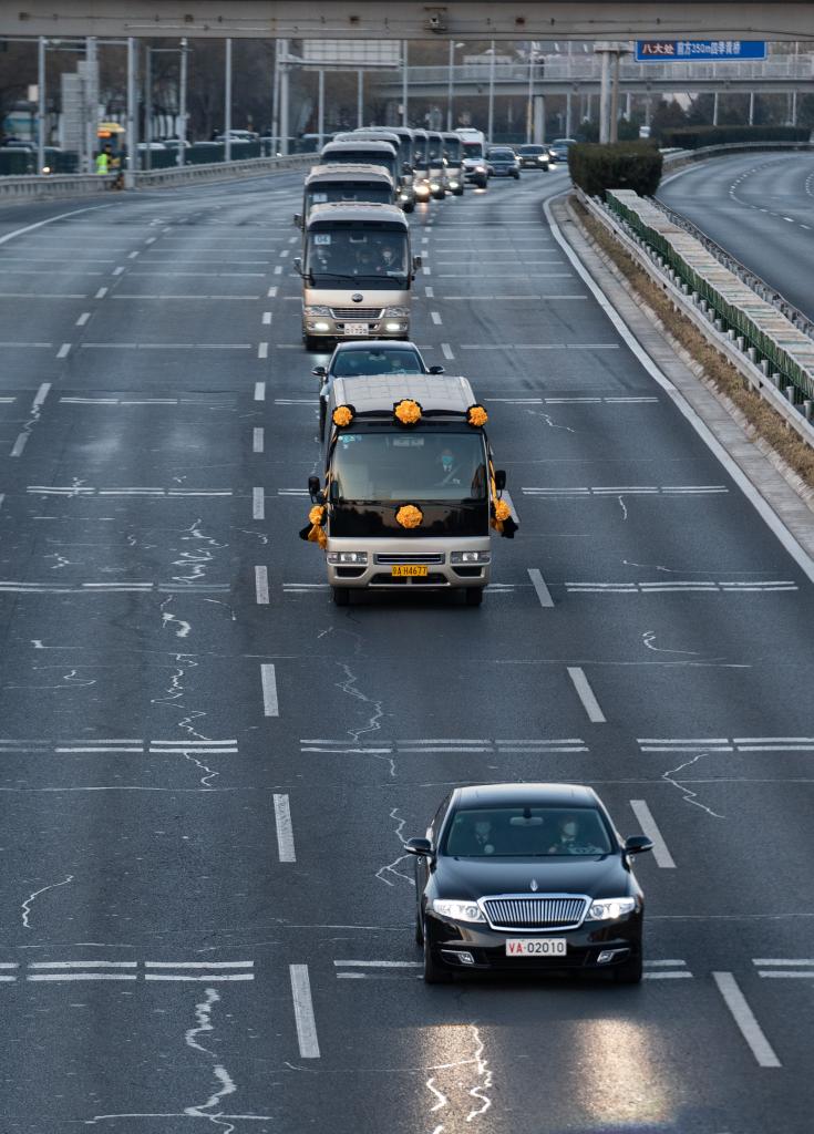 12月1日,江澤民同志的遺體從上海由專機敬移到達北京。習近平、李克強、栗戰(zhàn)書、汪洋、李強、趙樂際、王滬寧、韓正、丁薛祥、李希、王岐山等黨和國家領導同志到北京西郊機場迎靈。蔡奇等從上海護送江澤民同志遺體回到北京。新華社記者 李學仁 攝