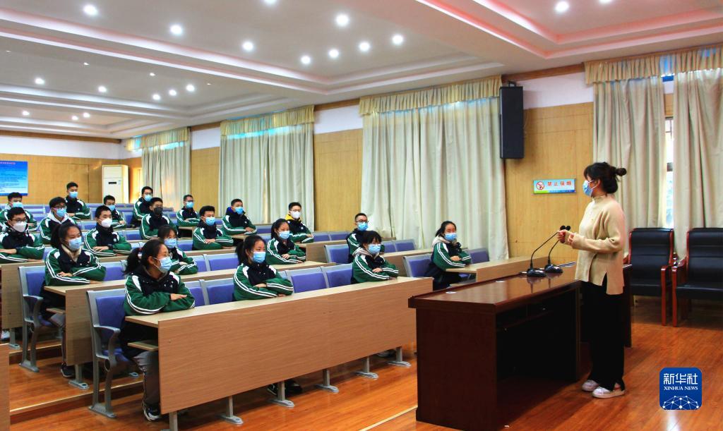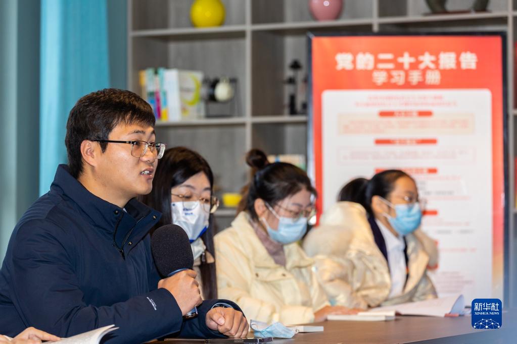 12月5日,在山東省棗莊市第八中學(xué),棗莊市薛城區(qū)委宣講團(tuán)舉辦“青草學(xué)堂”宣講活動(dòng),把黨的二十大精神送進(jìn)學(xué)校。新華社發(fā)