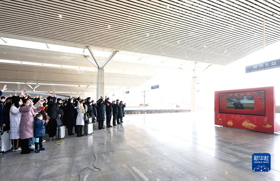 鄭州東站是我國最大的高鐵站之一,今年春運期間預計旅客發(fā)送量337萬人。習近平通過視頻連線看望慰問鐵路客運干部職工。在東站一站臺,鄭州東站站長匯報車站春運總體情況。習近平又詳細詢問車站現在每天的客流量是多少?防疫措施落實得怎么樣?春運治安采取了哪些措施?囑咐他們精心組織調度,嚴守安全底線,確保廣大旅客安全出行。月臺上的旅客看見總書記,爭相趕到鏡頭前,向總書記問好。習近平親切詢問他們是回家過年還是外出旅游,叮囑他們注意旅途安全。習近平指出,春運是關系人民群眾切身利益、關系經濟發(fā)展和社會穩(wěn)定的一件大事。今年春運是疫情防控進入新階段后的第一個春運,客流量大幅回升。交通運輸部門要堅決貫徹落實黨中央要求,提升保通保暢能力,確保人民群眾平安健康出行,確保重點物資運輸暢通有序。要堅持底線思維,加強對極端惡劣天氣的監(jiān)測和預警,深入開展安全隱患排查治理,堅決遏制重特大安全事故發(fā)生。要加強對出行相對集中的務工流、學生流的服務引導,確保他們節(jié)前安全返鄉(xiāng)、節(jié)后順利返崗返校。要嚴格落實各項防控規(guī)定,最大限度降低交叉感染幾率,保障旅客身體健康。習近平強調,長期以來,交通運輸系統(tǒng)的干部職工埋頭苦干,擔當奉獻,功不可沒。春節(jié)期間,許多同志要堅守崗位。習近平代表黨中央,向交通運輸系統(tǒng)的廣大干部職工致以新春的祝福,并祝廣大旅客旅途順利。