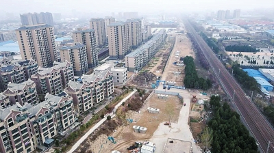 在開(kāi)封市金明華府小區(qū)南側(cè),延長(zhǎng)線項(xiàng)目開(kāi)始從橋梁向路基過(guò)渡,距離隴海鐵路僅數(shù)十米。