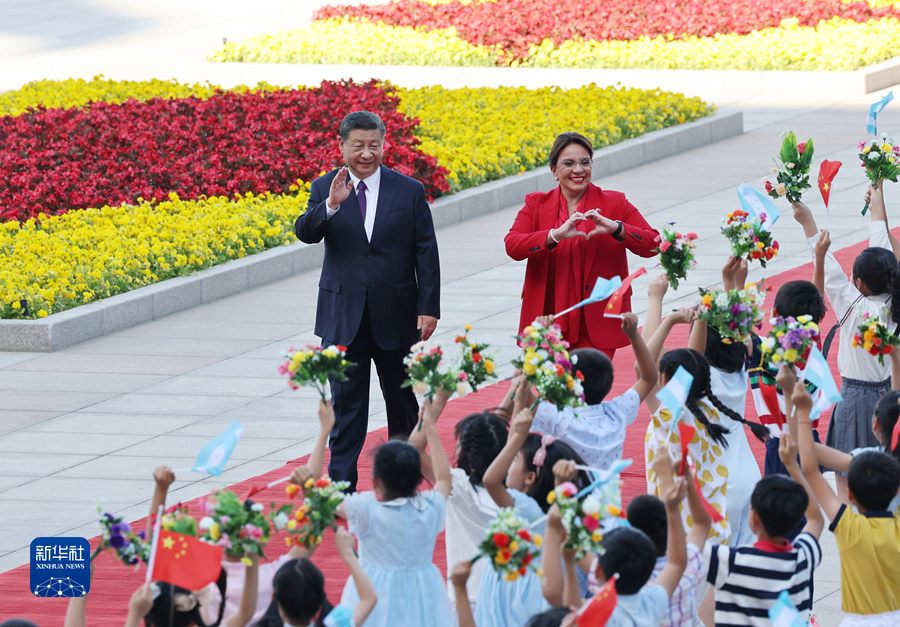 6月12日下午,國家主席習(xí)近平在北京人民大會(huì)堂同來華進(jìn)行國事訪問的洪都拉斯總統(tǒng)卡斯特羅舉行會(huì)談。這是會(huì)談前,習(xí)近平在人民大會(huì)堂東門外廣場為卡斯特羅舉行歡迎儀式。新華社記者 黃敬文 攝