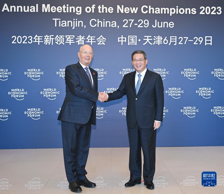 6月26日下午,國務院總理李強在天津會見世界經(jīng)濟論壇主席施瓦布。新華社記者 岳月偉 攝