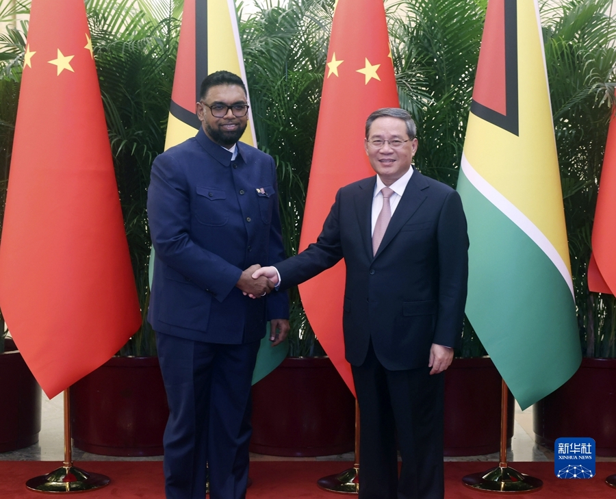 ??新華社北京7月30日電 國務(wù)院總理李強7月30日下午在人民大會堂會見來華出席第31屆世界大學(xué)生夏季運動會開幕式并訪華的圭亞那總統(tǒng)阿里。