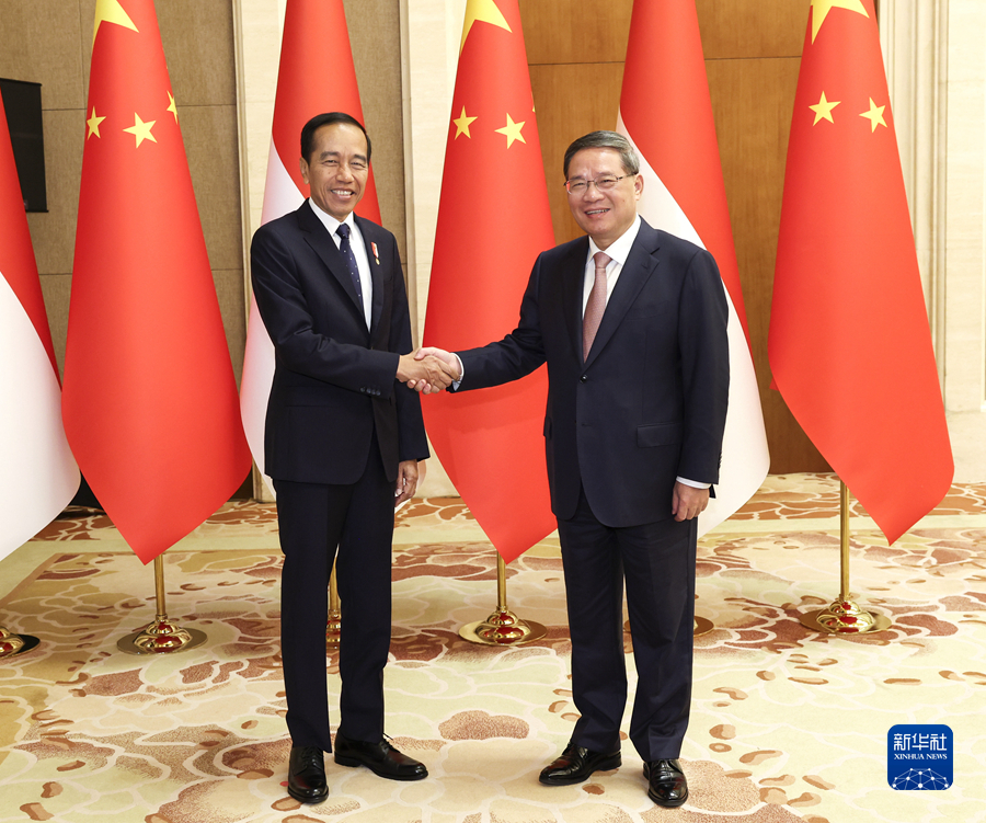 10月17日上午,國務(wù)院總理李強(qiáng)在北京會見來華出席第三屆“一帶一路”國際合作高峰論壇并進(jìn)行國事訪問的印度尼西亞總統(tǒng)佐科。新華社記者 龐興雷 攝