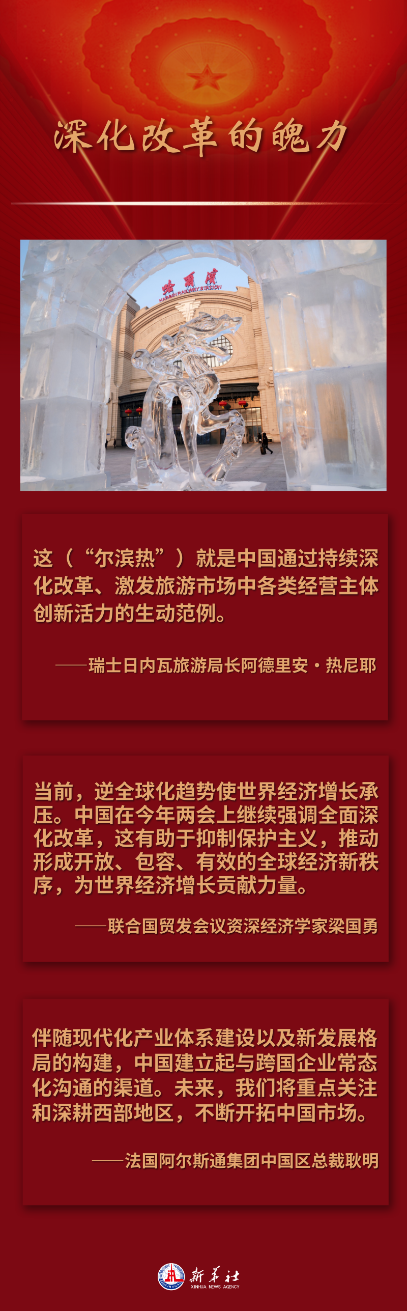 ??今年年初,“爾濱熱”火出國(guó)門,引來歐洲冰雪勝地瑞士旅游部門的“隔空互動(dòng)”。瑞士日內(nèi)瓦旅游局長(zhǎng)阿德里安·熱尼耶說,這就是中國(guó)通過持續(xù)深化改革、激發(fā)旅游市場(chǎng)中各類經(jīng)營(yíng)主體創(chuàng)新活力的生動(dòng)范例?!拔液芘宸枮I,政府能與整個(gè)市場(chǎng)一同努力挖掘冰雪旅游資源、改革完善相關(guān)機(jī)制,讓冬季活動(dòng)變得如此多彩!”