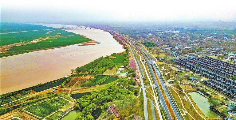 ????鄭州黃河生態(tài)廊道郁郁蔥蔥、景色宜人(4月1日攝)。近年來,鄭州市建設(shè)沿黃生態(tài)廊道示范工程和生態(tài)休閑體驗帶,促進黃河流域生態(tài)保護和高質(zhì)量發(fā)展。記者 聶冬晗 攝