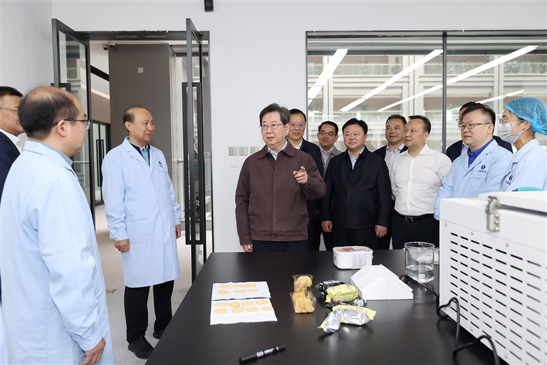 十月八日,省委書記樓陽生到漯河市調(diào)研中原食品實(shí)驗(yàn)室技術(shù)創(chuàng)新、成果轉(zhuǎn)化等情況。 本報(bào)記者 董亮 蔡迅翔 攝