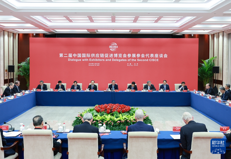 ??11月25日,國務(wù)院總理李強(qiáng)在北京同第二屆中國國際供應(yīng)鏈促進(jìn)博覽會(huì)參展參會(huì)企業(yè)代表座談。新華社記者 王曄 攝