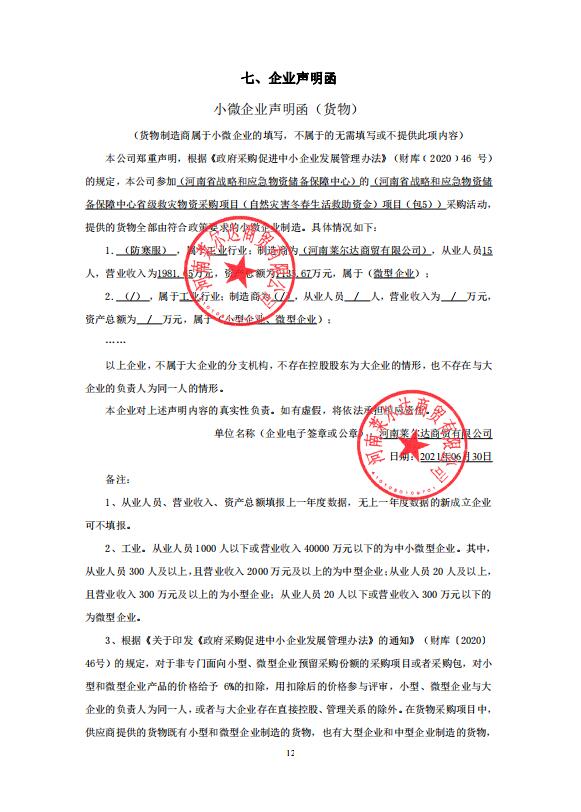 豫政采(2)20210357-5 | 防寒服 | 河南萊爾達商貿(mào)有限公司 | 河南省鄭州市鄭東新區(qū)白沙鎮(zhèn)楊橋路大漢物流園1排2號 | 565000 | 金額 | 元 | ||