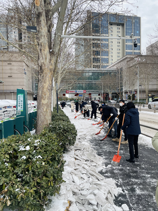 近幾日,鄭州先后出現凍雨、冰粒、持續(xù)性降雪的復雜雨雪相態(tài),氣溫驟降,道路出現先結冰后積雪現象,給市民生活、出行帶來極大不便。2月22日,中共河南省中豫工程咨詢集團有限公司第四支部、河南豫信招標有限責任公司積極響應鄭州市文明辦發(fā)出的最新倡議,發(fā)揮黨支部先鋒堡壘作用,踐行國有企業(yè)為民服務社會責任,組織公司黨員、職工開展“清雪除冰志愿服務活動”,深入街道清雪一線,助力清雪除冰工作,用實際行動為民服務,為保障群眾出行安全貢獻力量。