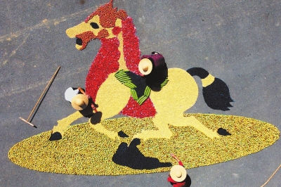 9月22日,在欒川老君山景區(qū),農(nóng)家賓館經(jīng)營(yíng)者用山楂、甜棗、苦瓜、辣椒等農(nóng)作物曬秋,造型生動(dòng)。 本報(bào)記者 王錚 攝