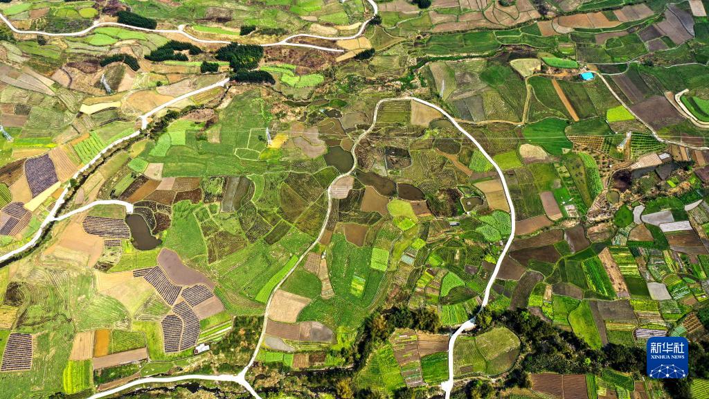 廣西融安縣潭頭鄉(xiāng)新桂村的春耕田園景色(3月17日攝,無人機(jī)照片)。新華社記者 張愛林 攝