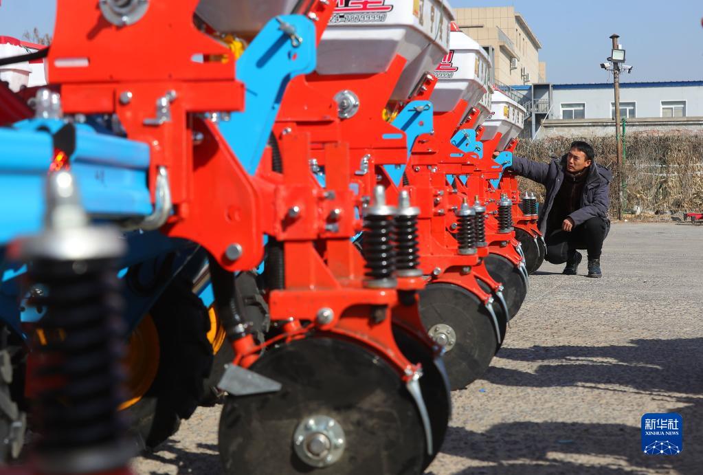 2月23日,在遼寧省鐵嶺縣遼寧實(shí)豐機(jī)械有限公司,工人檢查即將出廠的玉米播種機(jī)。新華社記者 楊青 攝