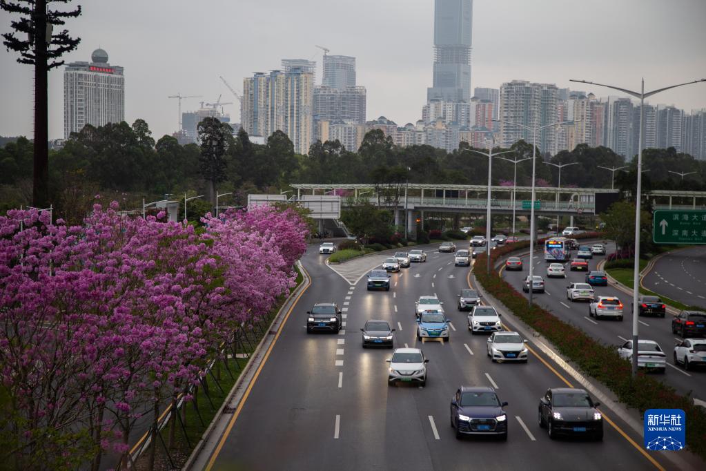 這是3月21日在深圳沙河西路拍攝的車流。新華社發(fā)(劉羽潔 攝)