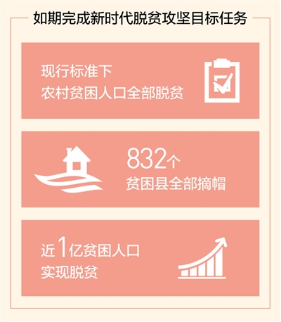 黨的十八大以來,以習近平同志為核心的黨中央團結(jié)帶領(lǐng)全黨全國各族人民,把脫貧攻堅擺在治國理政突出位置,組織實施了人類歷史上規(guī)模最大、力度最強的脫貧攻堅戰(zhàn)。習近平總書記指出,“我們要立下愚公移山志,咬定目標、苦干實干,堅決打贏脫貧攻堅戰(zhàn),確保到2020年所有貧困地區(qū)和貧困人口一道邁入全面小康社會。”“到2020年現(xiàn)行標準下的農(nóng)村貧困人口全部脫貧,是黨中央向全國人民作出的鄭重承諾,必須如期實現(xiàn),沒有任何退路和彈性。”