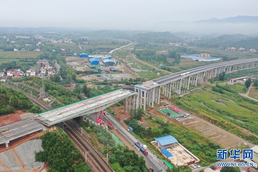 新華網鄭州9月22日電(范作言)9月20上午8:30,在河南南陽澠淅高速(澠池-淅川)跨寧西鐵路(南京-西安)轉體橋施工現場,隨著2臺牽引機的轟鳴啟動,重達21000噸的T構梁緩慢順時針旋轉,在歷時90分鐘旋轉67.5°后成功轉體,平穩(wěn)跨越了寧西鐵路和G312國道,在空中實現“華麗轉身”和精準對接。